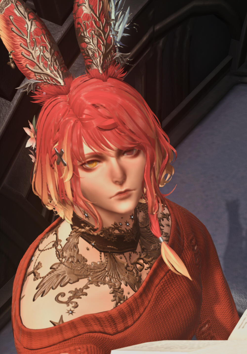 Simple Backstory: Born and raised in Gridania, Idris was always huddled in the corner with books. He was 12 when he lost his eyesight, diving headfirst into a void gate to sate his curiosity, but it never deterred him from his quest for knowledge. Became a retainer as a chance to achieve his dreams as an archivist.